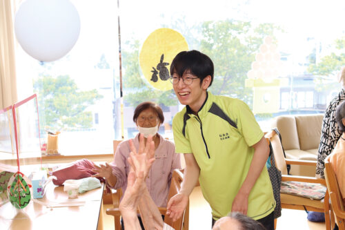 会社説明会で、社長が優しく話しかけてくれたことが入社の決め手に。現在は、利用者の方の生活介助をしています。頼りになる優しい先輩たちが居るので、安心して働けます。