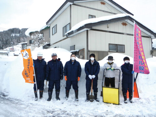 広く親しまれる社風を醸成するため、CSR(企業の社会的責任)行動指針を定め、全社員がその推進に努めています。一例として、清掃活動や除雪、防災など社会貢献活動に積極的に参加。地域社会の一員としての責任を自覚し、社会から信頼される企業を目指します。