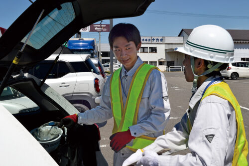 国道の維持管理を担当。土木科で学んでいましたが、現場でしか学べないことがたくさんあり、毎日が新鮮です。教育体制が整っていて、先輩たちのバックアップが頼もしいです。