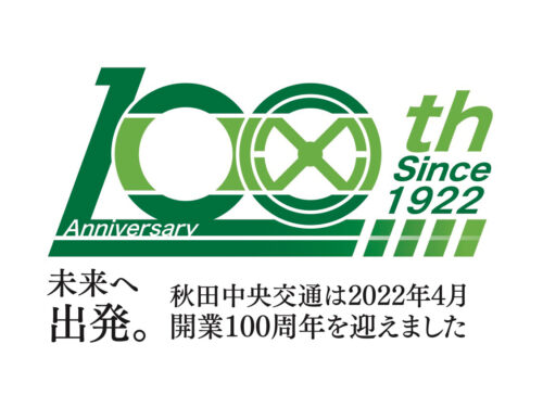 2022年4月21日、「100周年記念ロゴマーク」を制定。地面が線路(枕木)から道路(中央分離帯)へ移り変わり、100年の形は鉄道からバスへ車輪・タイヤが変化。タイヤに当社の社章を組み込んだデザインです。