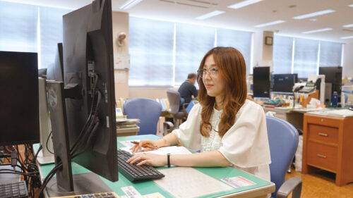 就職の決め手は福利厚生の充実や安定性でしたが、仕事を始めて地域を支える事業の重要性を実感! 総務や従業員の健康管理も重要なので、ミスなくこなしていきたいです。