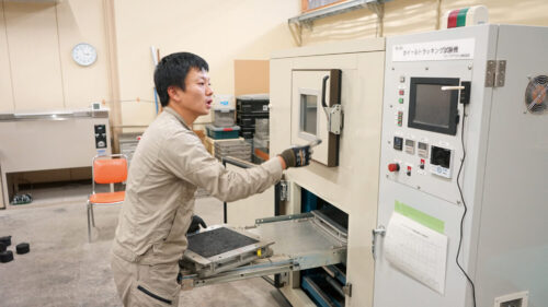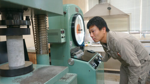 大学で土木を学び、県外に就職しましたが、子どもの小学校入学を機に帰郷。担当する建設資材の強度・耐久試験は構造物の安全性に直結する仕事なのでやりがいを感じます。