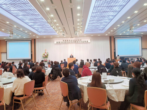 2023年に100周年を迎え、忘年会と合同で100周年式典を開催しました。社内交流も活発で、自発的にさまざまな部を発足して活動中。そのチームワークの良さは、業務にも生かされています。