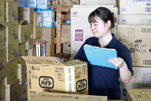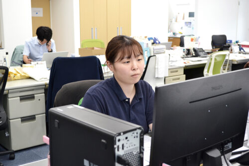 商品の納品準備や請求書発行など、営業のサポート業務や消耗品の発注を担当しています。社内外を問わず人と接する機会が多くあり、「ありがとう」の言葉が励みになっています。