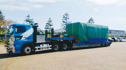 「平ボディ」は、秋田県内から鉄骨を積載し、関東や東北の建設現場へ運搬。また、秋田港から県内外の倉庫、または建設現場への運搬もあります。
