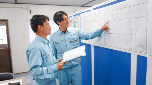 工程・品質の管理を担当する現場で、完成に立ち会った時の達成感は最高です。作業の効率化を図りながらお互いのワークライフバランスを尊重した働き方に取り組んでいます。