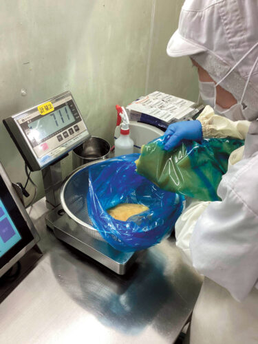 製品の調味料の計量は、数量はもちろんアレルゲン食品を最後に計量するなど、決められたルールをしっかり守ることが大事。お客様からの感謝の声はうれしいです。