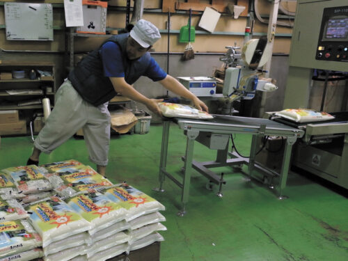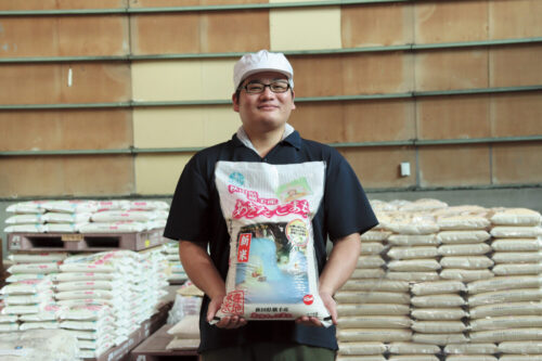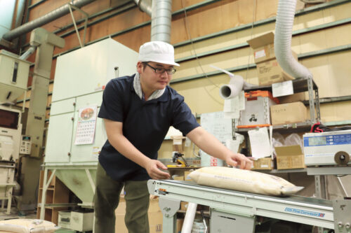 精米して包装され、レーンに流れてくる製品の荷造り・発送を行っています。業務のほとんどを一人で任せてもらえるようになりました。次の目標はフォークリフトの資格取得!