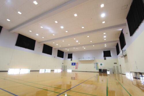 延床面積1,293㎡、厚生施設「ゆうゆうホール」。体育館や浴場が完備され、自由に利用できる。