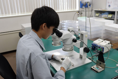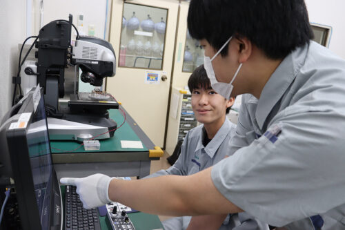 研修で会社のことはもちろん、社会人マナーも学ぶことができました。現在は製品の評価作業を担当。今後は製造や設備点検など幅広い仕事ができるようになりたいです!