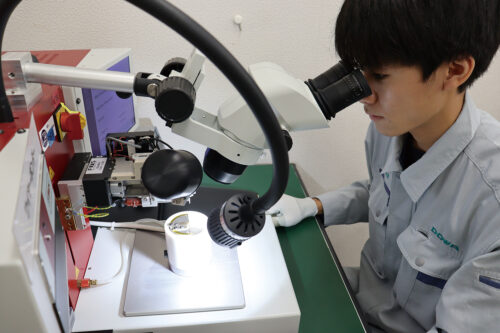 地元で製造業に就きたく入社しました。製造されたLEDチップの光学・電気特性をさまざまな装置で評価する仕事を担当。身近なLEDに自分が関わっていることを誇りに感じます。