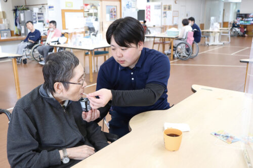 15:00 おやつ配膳、介助、下膳、トイレ誘導