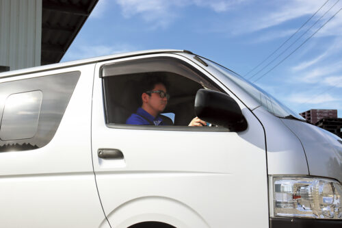運転することとトラックが好きで入社しました。今はワゴン車で秋田市内の配送を担当しています。失敗しても親身になってアドバイスをくれる先輩がいて、働きやすい職場です。