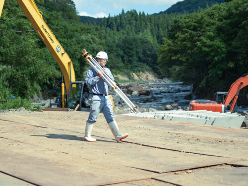 地元・雄和で地域貢献がしたかったこと、実績のある会社で評判が良かったことから入社。現在、河川災害復旧工事を担当。昨年の大雨で崩れた護岸の改修を行っています。