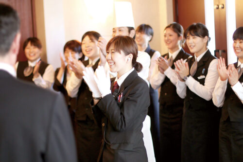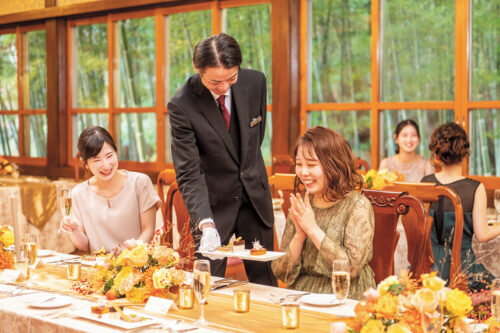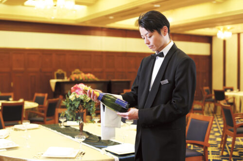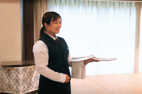 披露宴や宴会のフロアサービスを担当。お客様目線を意識し、要望を察して動くことを心掛けています。感謝の言葉をいただく機会が多く、うれしさとともにやりがいを感じます。