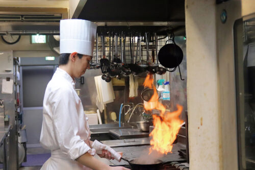 インターンシップで多くの学びがあり、さらに成長したいと入社。仕込みや盛り込みなどの業務を通じ、お客様にとって特別な日に関われることがうれしく、やりがいを感じます。