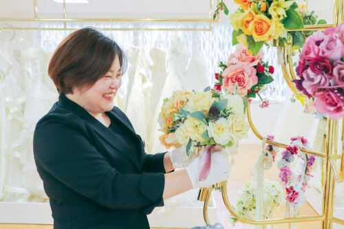 人の心を動かす瞬間に立ち会いたいとウェディングプランナーを志願。特別な日を迎えるためのサポートを経て、幸せを近くでお祝いできるのが、この仕事ならではの喜びです。