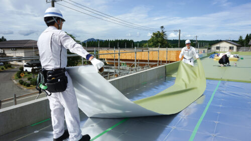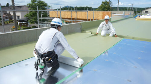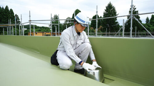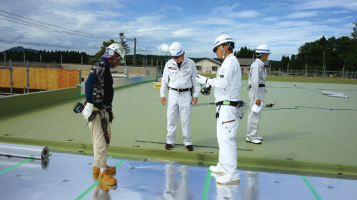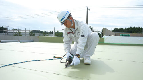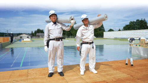 当社は、県内の公共施設・ビルなどの防水工事や屋上防水システムの開発などで設立から半世紀の実績を積み上げ、建設業界から厚い信頼を得てきました。スクラップアンドビルドより改修による維持管理へと需要は移り変わり、当社のニーズも今後さらに拡大。これまで積み重ねてきた防水工事の技術と信頼、品質本位の施工技術を継承する若手の育成に取り組んでいます。
