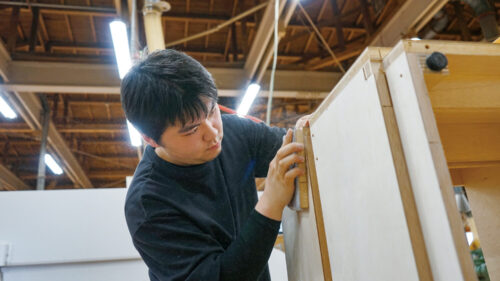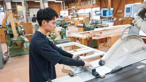 地元で手仕事の職人を目指して入社。先輩方にイチから教えてもらい、家具の部材加工を担当しています。図面を見て段取りを考え、完成させる工程がおもしろいです。