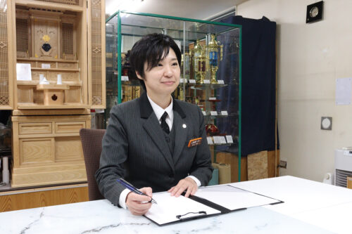 父の葬儀を通して「人の最期を支える仕事の尊さ」を実感して入社。仕事に慣れすぎないことを心がけ、「故人が望んだ見送りでした」と言っていただけることがやりがいです。