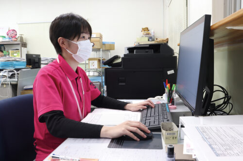 主な業務は請求書のチェックや来客応対、約束手形の発行などです。まだわからないことがありますが、新しいことを任せられたり、できるようになった時、やりがいを感じます。