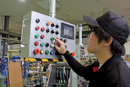 製品検査課の業務は機械の試運転・調整です。作業時は目配り・気配りすることを意識して仕事に臨みます。仕事が一段落ついた時は、達成感を感じますよ。