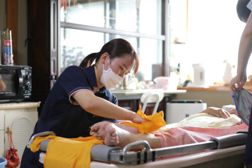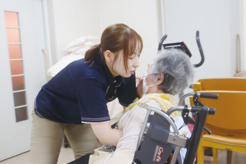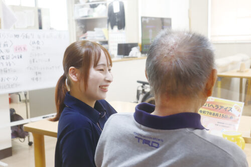 研修制度が充実していて、未経験者も介護スキルをあげられると思い入社。お客さまの食事や入浴など日常生活のサポートや、体操など心身機能向上のサポートが主な業務です。