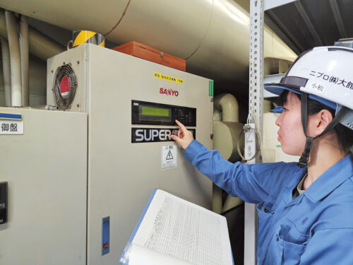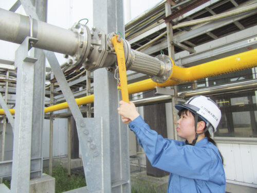 空調や電気、水回りなど工場内のユーティリティの管理をしています。業務が幅広く、いろいろな経験ができて面白いです! 今は業務で生かせそうな資格取得を頑張っています。