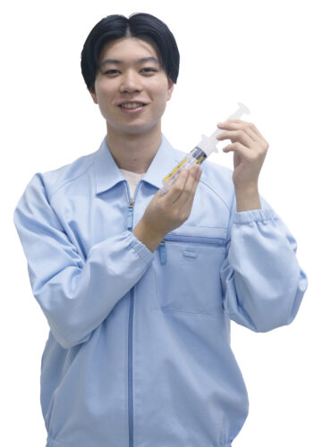 包装工程でシリンジを観察し、異常がないか確認する業務を担当しています。自分が製造に携わった製品で世界中の人を助け、世の中の役にたてたと思える時にやりがいが!