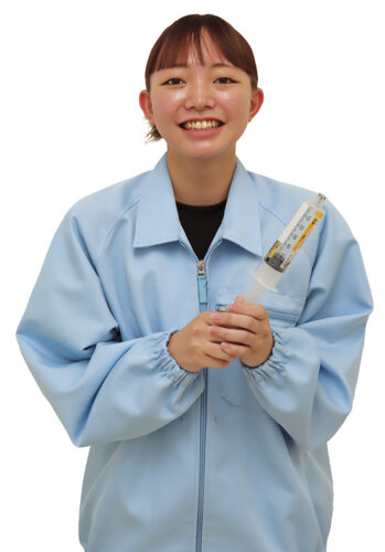 国内で2社しか作れない注射器の梱包を担当。自分たちの製品が人の命を救っていること、新しい仲間と出会えたことにやりがいを感じ、入社して良かったと思っています!