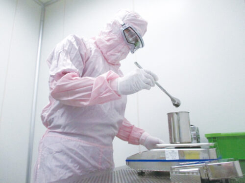 抗がん剤を製造する部署で、秤量や調製の工程を担当。薬液を扱うため一つひとつの作業が責任重大ですが、人の命を支え、助ける手立てになれることが、一番のやりがいです。