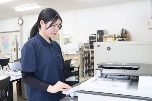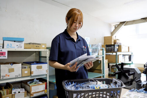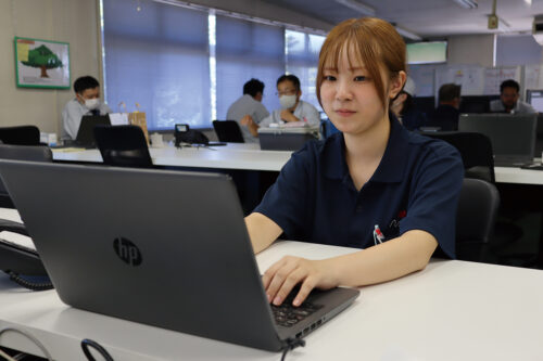 一日の仕事は注文書の作成や納品書・請求書の処理、伝票入力です。仕事をする中で「手伝います」や「その仕事やります」など積極的に行動することを心がけています。