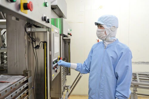 製造ラインのオペレーターとして、製品の仕込みや調理、包装など携わっています。想定よりスムーズにラインを回せると、余裕ができて励みに。効率を上げる努力をしています。