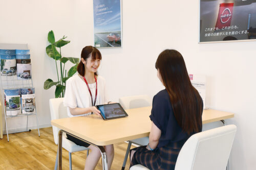 安全なカーライフを送るための提案をするお仕事です。2年目になり、商談の進め方や手続きの仕方など、一連の流れがわかってきました。お客様からの感謝の言葉がうれしい!