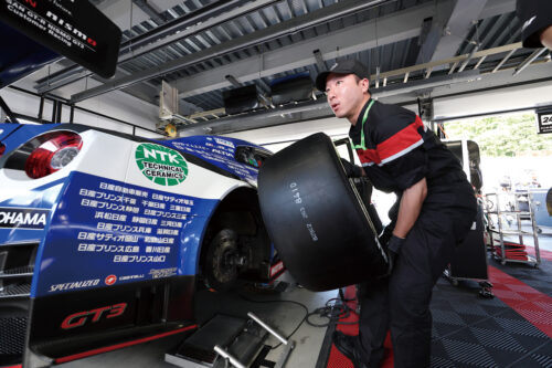 「日産メカニックチャレンジ」プロジェクトでは、当社のスタッフが国内最高峰レースであるGT300にテクニカルスタッフとして参加しました。実際のレース現場で、スキルや経験が得られる機会にも恵まれています。