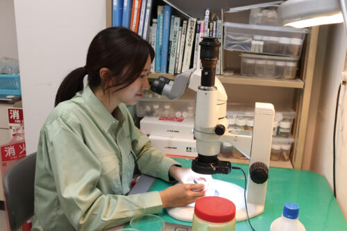 生まれ育った秋田の地域社会の発展に貢献したいと入社しました。調査データの整理や報告書の作成を行いつつ、生態調査でさまざまな生き物に触れることができて楽しいです。