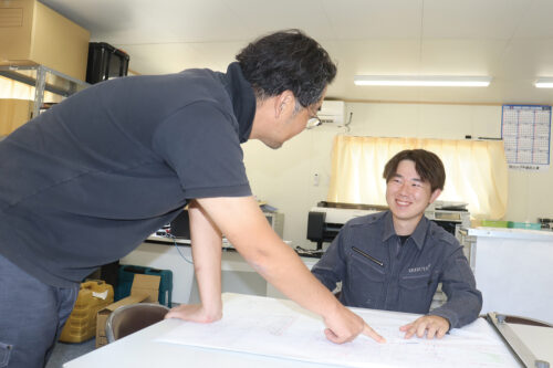 資格手当が良く、福利厚生がしっかりしているので、安心して仕事ができると思い入社。現場で作業内容や安全性を確認したり、施主様や業者と打ち合わせるのが主な業務です。
