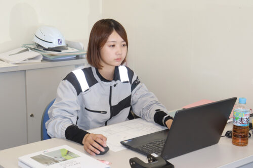 会社見学の際に現場の雰囲気が良かったこと、幅広い施工実績に魅力を感じ入社。現場監督として、見積や施工図の作成、測量などの現場作業、職人への指示などを行っています。