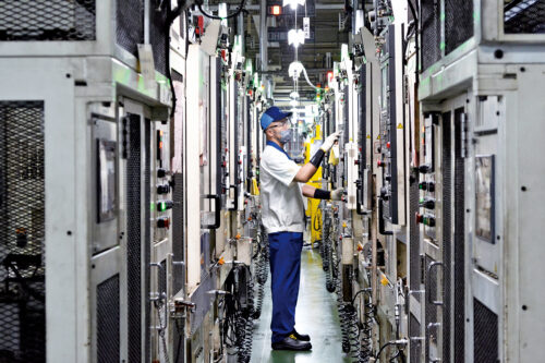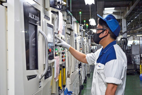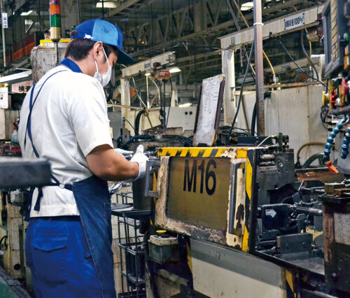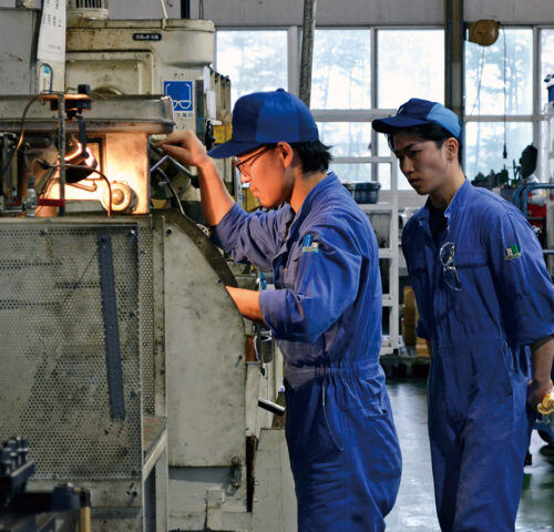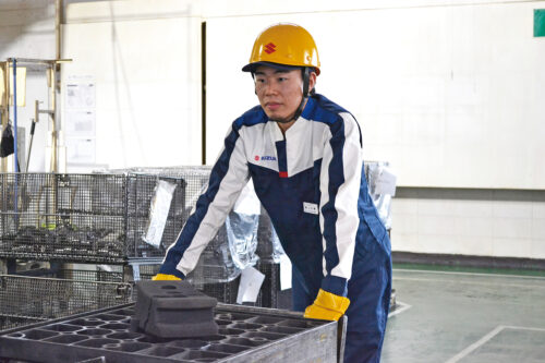 プレスや研削、金属加工などに専門的な機械を稼働して製造を行う工場内。鋳物機械装置や炉などの熱処理設備を担うラインもあり、安全に努めた作業を行っています。完成品は厳しい試験・検査を経て出荷。この工場で製造された部品が、「スズキ(株)」の自動車をはじめとする輸送機器の一部になっています。