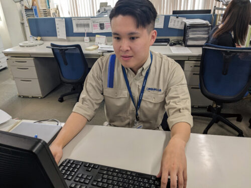 地域密着型でお客様の信頼度も高く、エネルギー供給を通して社会に貢献したいと思い入社。LPガス関連の貯蔵品の管理、会計伝票の起票、請求書の発行などを担当しています。