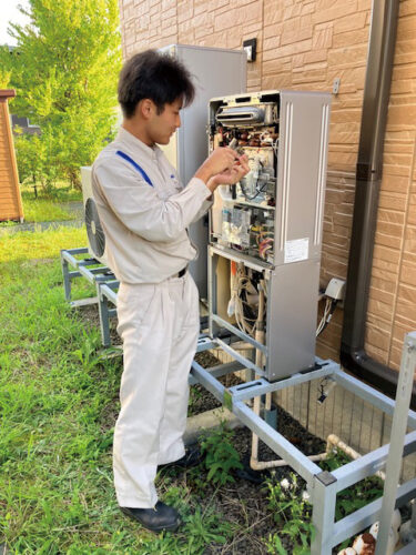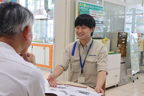 高校で学んだ電気以外の知識も身に着けたいと思い入社を決意。お客様宅へのLPガス機器の提案から販売、設置、定期点検を担当。お客様の気持ちに寄り添った接客を目指します。