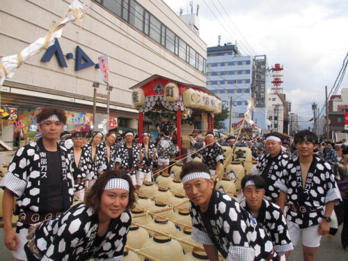 秋田のまちを元気にするために、地域の活動に力を入れています。お客様への感謝の気持ちを込めて「お客様感謝祭」を開催したり、「秋田竿燈まつり」にはグループ会社と一緒に社員有志が参加して、みんなでお祭りを盛り上げています。