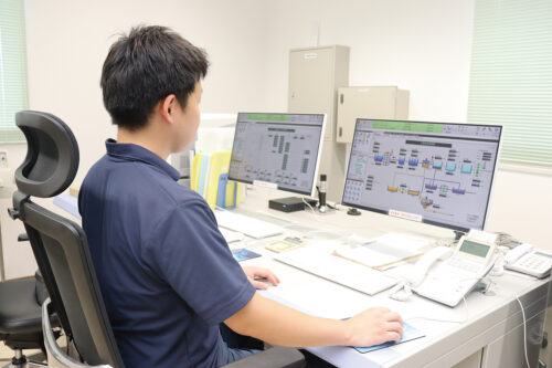 管理施設をチェックする監視業務もあれば、現場で点検やメンテナンスを行う保守点検業務もあり、幅広い仕事内容で上下水道施設を維持管理。専門知識が身につき、下水道三種や電気主任技術者などの資格取得も可能です。