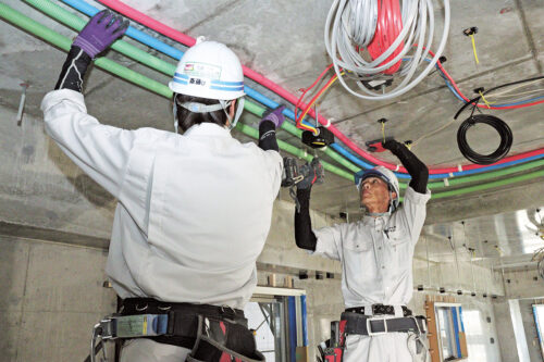 大型建築物の施工多数公共や民間の大型建築物の空調・衛生設備を施工。一つの現場に長期携わることでチームワークを高めあい、作業技術の向上にもつなげています。