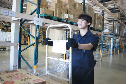 トラック運転手に憧れて入社。現在は主にピッキング作業を担当し、順番に倉庫内の作業を覚えています。商品が多い日は大変ですが、作業完了時のやりがいはひとしおです!